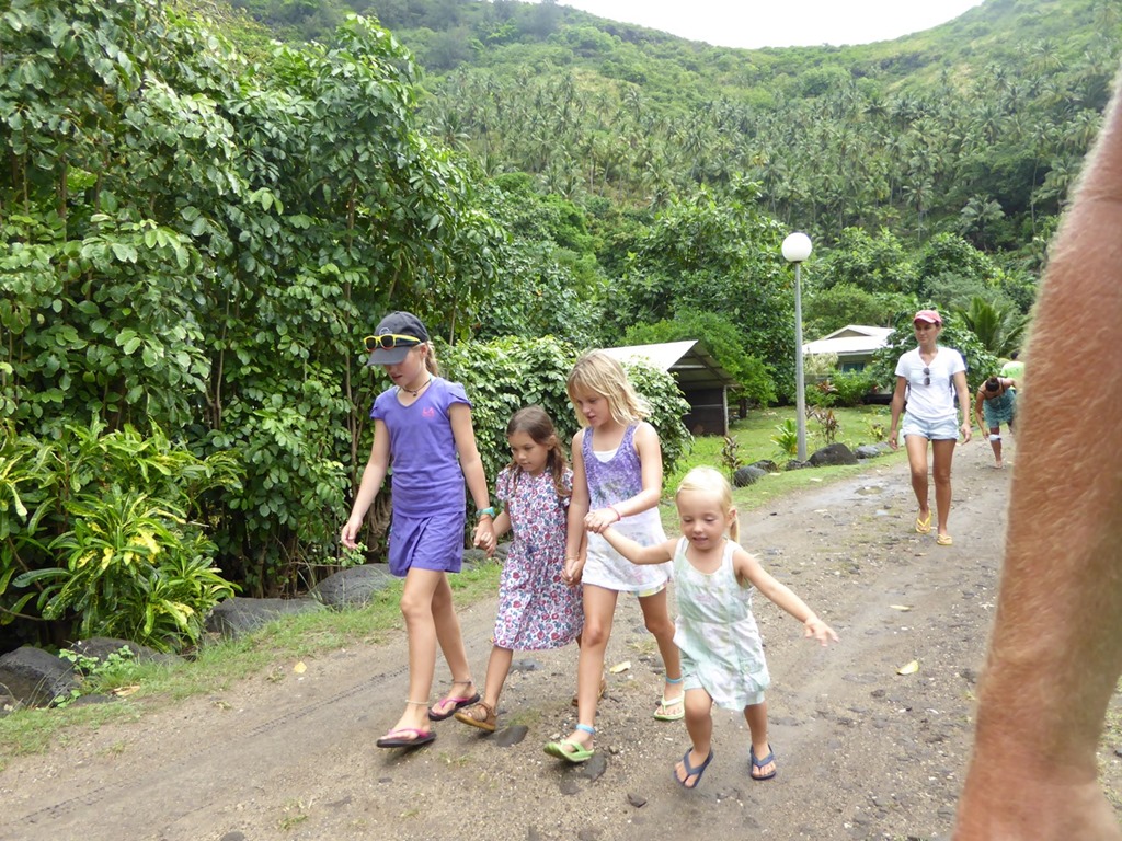 Getting around. Taxis are rare. There is one for the whole of Hiva Oa and the only time we got in to that, he didn’t charge us anything in way of apologising for being away on holiday the week before with his wife when we were trying to find out her prices for laundry! Hitch hiking is accepted. If you stick out your thumb here, you are more than likely to picked up by a local, even more so if you have children or a woman in the group.