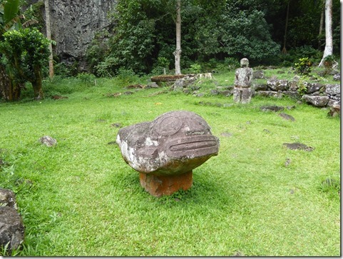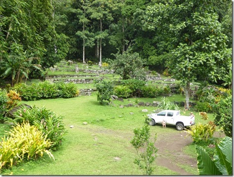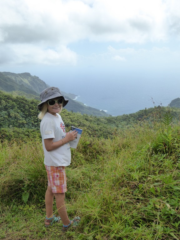 We hired a car, once, to explore Hiva Oa. Prices for a 4×4 Toyota Landcruiser will be around $100 per day and this price is common on all the islands. It is strongly recommended that you get a 4×4 (and know how to use 4×4 , hi and lo ratio)if you are going to explore. The roads out of town quickly become hard tracks and get steep. If it has been raining, you will need all the traction you can get. Mia and the Taranga crowd had an embarrassing night in the wild waiting for the road to dry up enough for them to move when on Nuka Hiva. They did say they got a good sunrise.