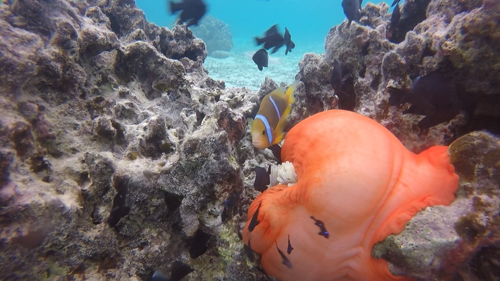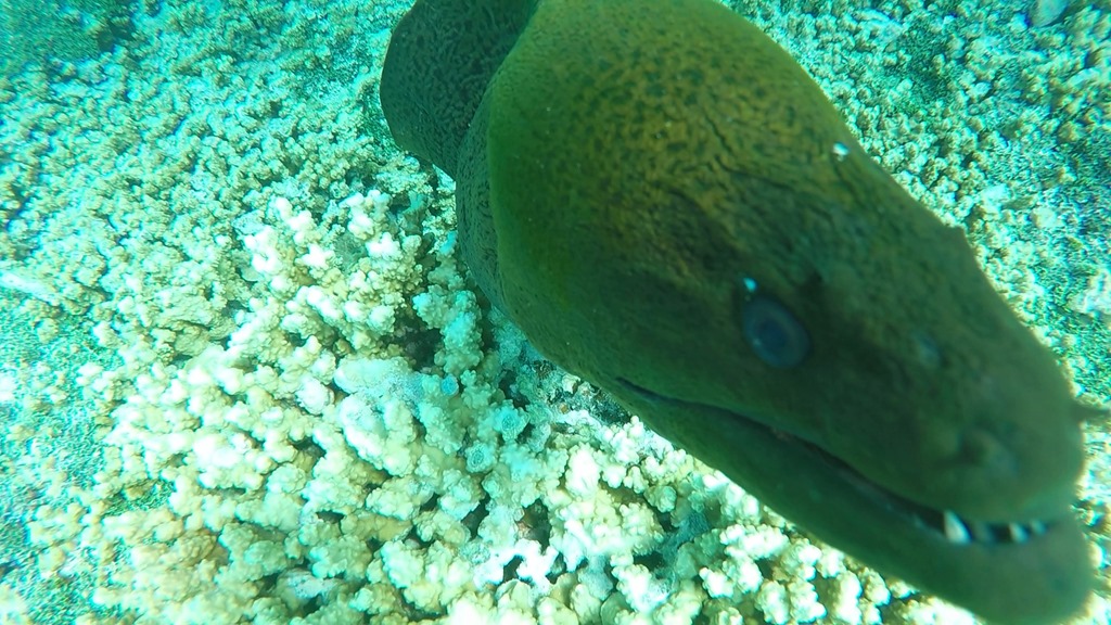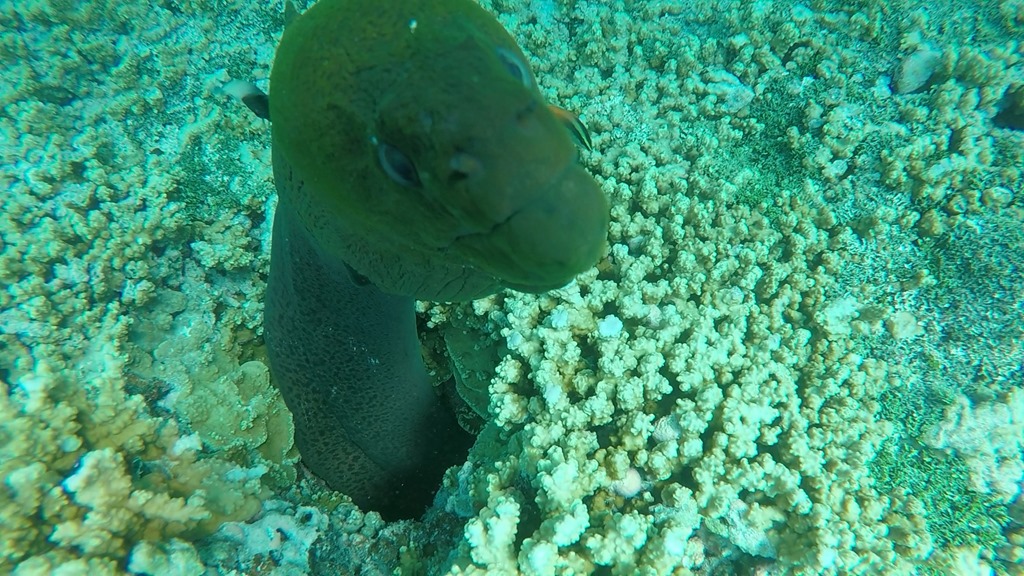 Eleanor and myself found a handy dive shop to fill our bottles and the Aquarium, a dive area inside the Tiputa pass, unaffected by the current which had a maximum depth of around 15m. We managed to get six dives in, gradually spending longer underwater as Eleanor’s confidence, buoyancy technique and stamina improved. A highlight would be the huge Moray eel that came out and nuzzled the camera, hoping it was food.