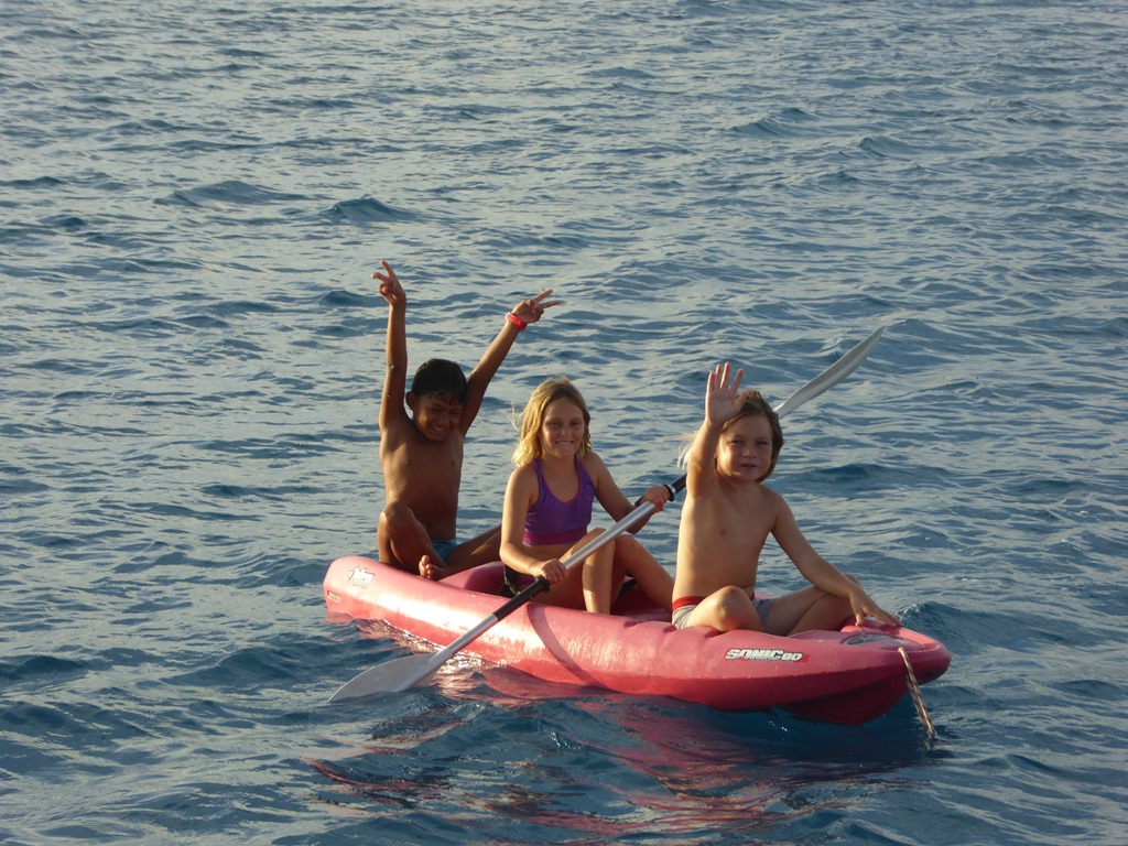 Life around the anchorage once the weather settled, was pleasant. We became a roosting place for Sooty Terns and we watched the local kids practise on the big 6 mans canoes around us. There was a pretty good supermarket a 10min walk up the road where we could get bread at 0830hrs every morning and we got together with the Taranga crowd most days. We even ended up in the big hotel enjoying G&Ts at the beach front bar, eating a drizzle cake that the girls had made to celebrate Nico’s birthday. The only trouble with Rangiroa is it is too big and spread out. It certainly felt the most touristy of all the atolls we have visited. If we had more time and had explored away from the passes (and therefore the tourists), perhaps I would feel differently but other than the pass diving, I could enjoy everything here at any of the other smaller atolls.
