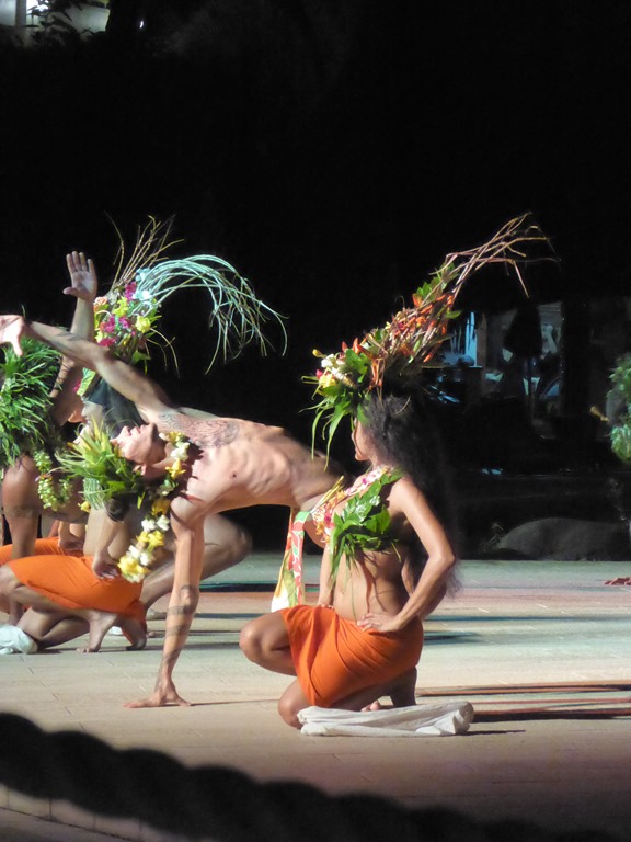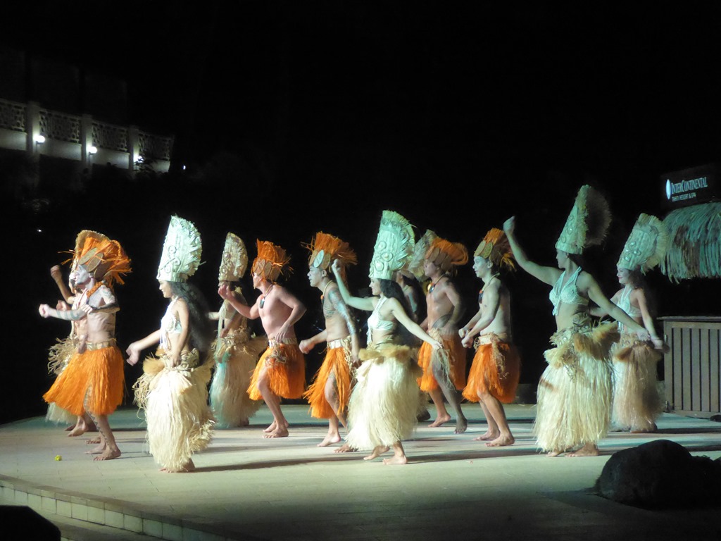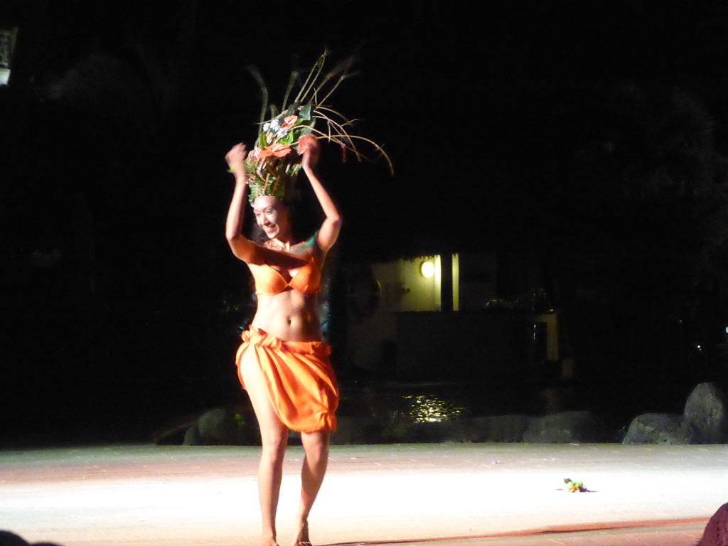 John and Julia had visited the local Intercontinental Hotel for its Friday night dance spectacular and recommended it to us. Having only seen a couple of shows before, the brilliant kid one at the end of the school year and then Bastille Day at Hiva Oa, we were keen to see the differences. The show was fantastic. I still don’t understand how someone can wiggle their hips quite as fast as the soloist did. Stunning. Some of the older generation of male watchers looked as if they were overheating a bit! The troupe danced for about an hour and the girls got the chance to have their photos taken with some of the stars.