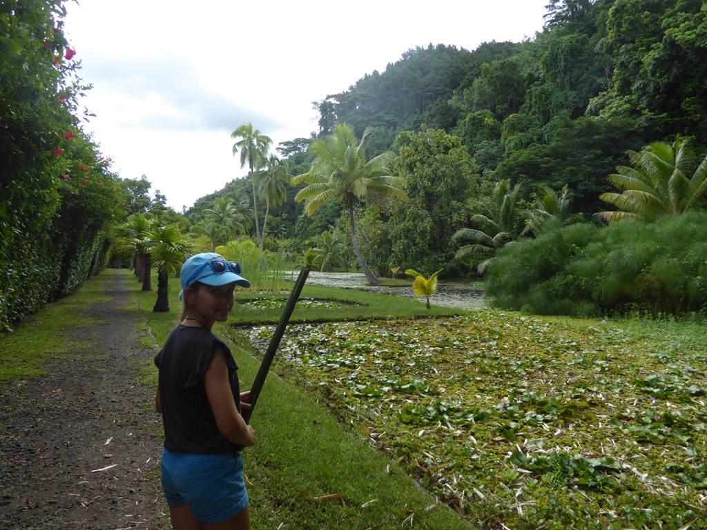 Just another mile down the road, we stopped at another park, the Vaipahi Spring Gardens. This was beautifully maintained, plants well signed and told a story of a chiefs’ elevation to heaven by way of a series of ritual purifications in the streams around the park. It had 2-4 hrs walks up in to the hills which we didn’t have time for. I am sure they would have been as interesting as the park. Eleanor will remember this place as she fell in to the last purification pool and we had to rummage around in the silt to find her flip flops.