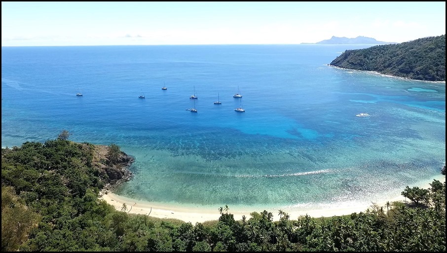 Just as in Fiji, it is necessary to show respect to the local chief if you want to explore the islands. A gift of cloth is the done thing with the more modern addition of a 1000XFP note tucked in with it. Nigel collected these and did a collective presentation to the Chief he had been told was the boss. Permission was granted for the fleet to anchor in a variety of places, to fish (a big concession) and to visit some of the smaller outer isles.