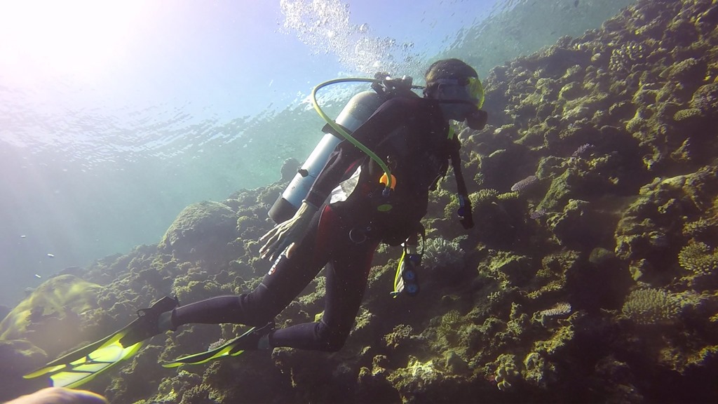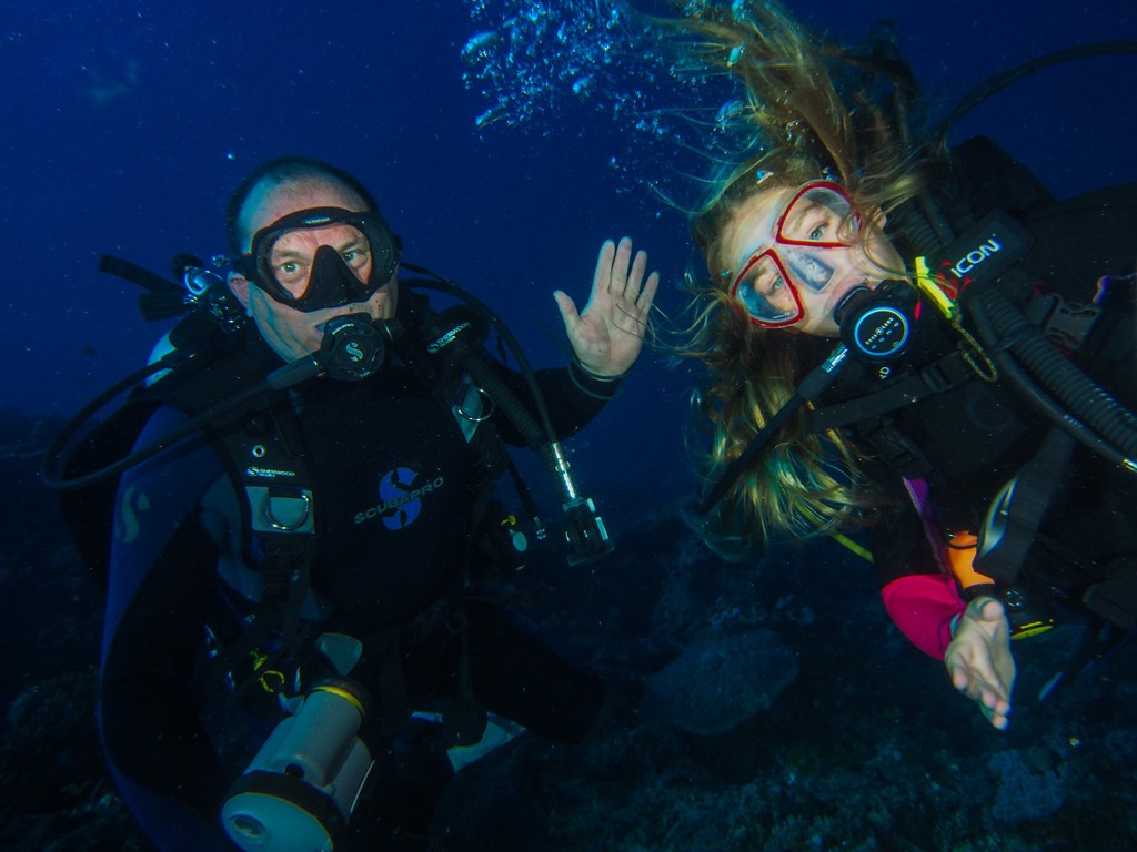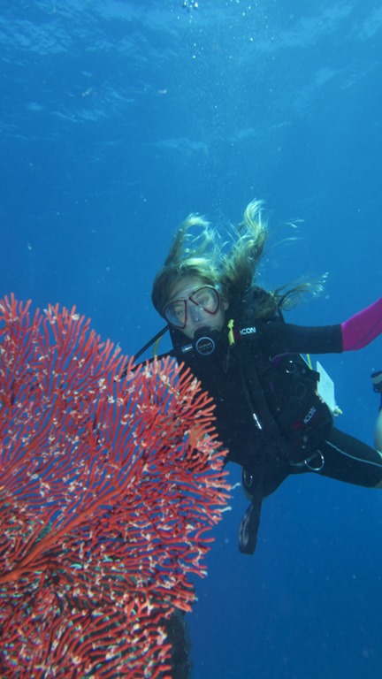 Eleanor went off with the Musket Cove Dive School for a couple of dives. Eric and Anne Simmons have been looking after the school whilst their friend the owner is away doing a bit of sailing. They are better known as the couple that have written an excellent free sailing guide for Vanuatu in conjunction with Vanuatu Tourism. I arrived back to pick her up and Eleanor was buzzing. I’d said that Eleanor was very good technically and had excellent buoyancy. What I hadn’t expected is for them to check this out, agree, then take her down to a depth that had my eyes bulging. She had a fantastic time and saw some great wildlife. Both Eric and Alice are expert underwater photographers and I thank them for the copies below.