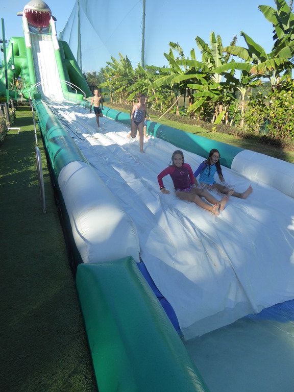 We had a bit of work to do on the boat at Port Denarau. The bimini was taken off to allow the solar panel holders to be restitched with UV thread, the sail cover had a couple of holes patched and I got a new tape sewn on the foot of the parasail. The water maker had been gradually producing poorer and poorer quality water – the membrane being shot after, I think, a little bit of contamination in FP. It is a simple job to replace a membrane but getting one sourced meant reaching out to NZ to find the Spectra dealer there as the Fijian dealer didn’t hold them. Some $600+ later, we had a new membrane. Typically, it got stuck in Customs and I decided to wait until the end of the Natalia’s visit to get it fixed rather than waste time getting it cleared.  Whilst I got the boat sorted out, the kids went to the nearby Bula Waterpark. Not a cheap activity at $180US a family day ticket but guaranteed fun. Be and Be who were still at Vuda Point awaiting parts came too.