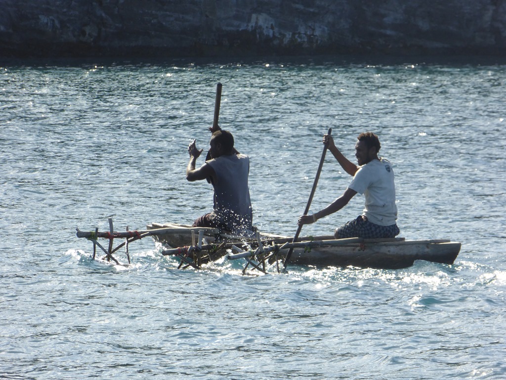 Navionics’ mapping appears to be a problem yet again in Vanuatu. Port Resolution, a major bay on the SE corner of Tanna doesn’t even show up as an anchorage. Thankfully I had bought the Rocket Guide to Vanuatu (a quite excellent publication which I wholeheartedly recommend) which had lots of details and handily, some waypoints that would get me in to the bay. We dropped in about 20’on to hard black sand. Great holding. We were a little surprised to find the bay full of other yachts. However, as we were in the process of dropping the hook, many of them were upping sticks and heading out. The yachts were from the Island Cruising Association Rally from NZ and having had their short stop in Tanna were off again heading N. By the next day they had all gone and it was far more peaceful. The locals mainly fished in the bay and no one used anything else other than a traditional dug out canoe from a single tree with outrigger. We did some trading with a couple of them. Biscuits (cookies), matches and cooking oil were traded for local fruit and veg.