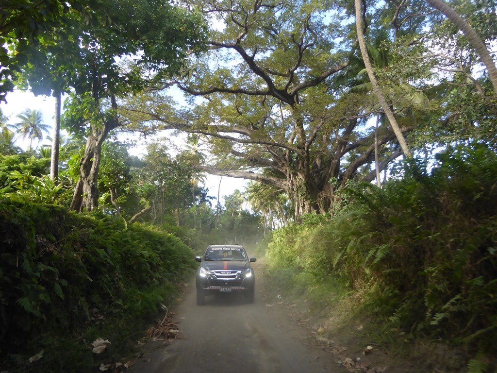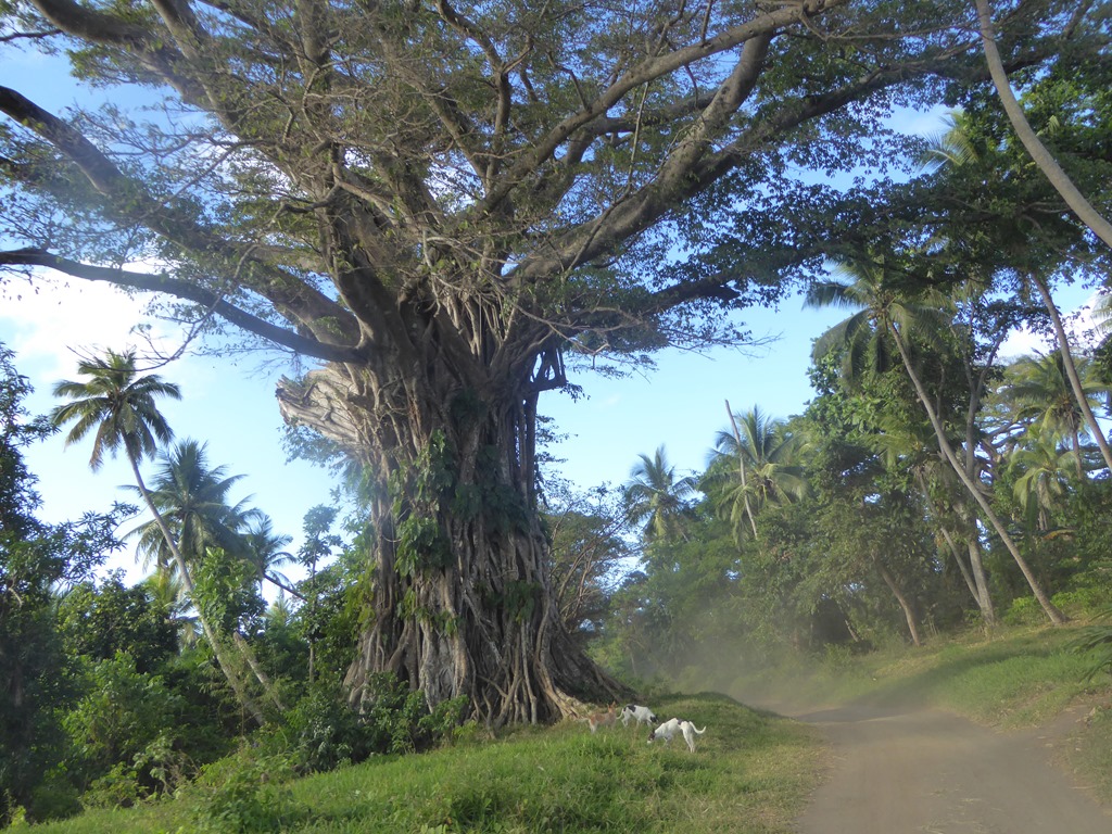 The dirt roads on Tanna are a lane and a half (at best) track and are covered by volcanic ash. It made for a dusty and exhilarating bumpy ride for the 20km to the park entrance.  Some of the trees we saw were magnificent, huge banyan type affairs that the locals revere.