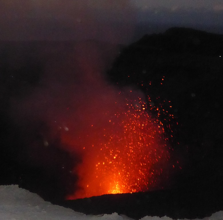 In the daylight, the volcano is mainly to do with bangs and huge billowing clouds of sulphurous smelling nastiness.