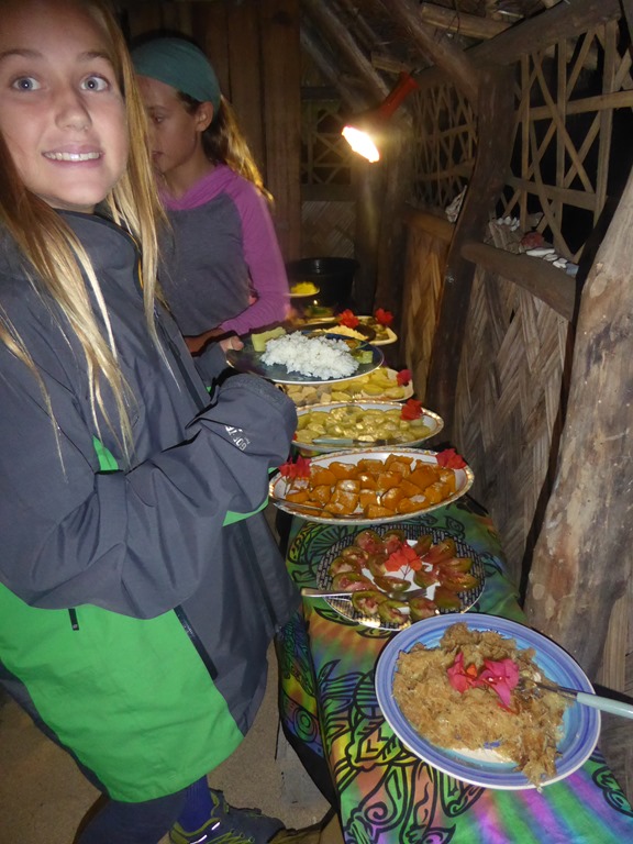 We had arranged for a meal at one of the locals houses. Sally, the lady in question served us all and another family just in that day for a total of 26 of us sitting down. It was the largest gathering she had ever had. We fed very well for the grand total price of 800vatu a head – about $8. Excellent value for a selection of local dishes, lots of fish and a papaya and banana pudding.