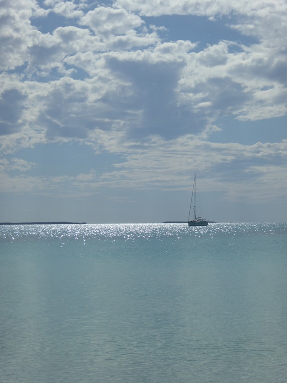 We met them again a couple of weeks later after Eleanor had demanded “kids to play with” for her 9th birthday and we had run S to Elizabeth Harbour, Georgetown at the bottom of the Exumas, the great stepping off point to the Caribbean.  Taia was already there and we quickly formed a good friendship with them, even if Ernesto regularly took the mickey out of my tiny dinghy, running around it in his and offering everybody a fast, dry ride back to Skylark from Volleyball Beach, our daily hangout, rather than being swamped in ours. There were times I could have happily punched him.