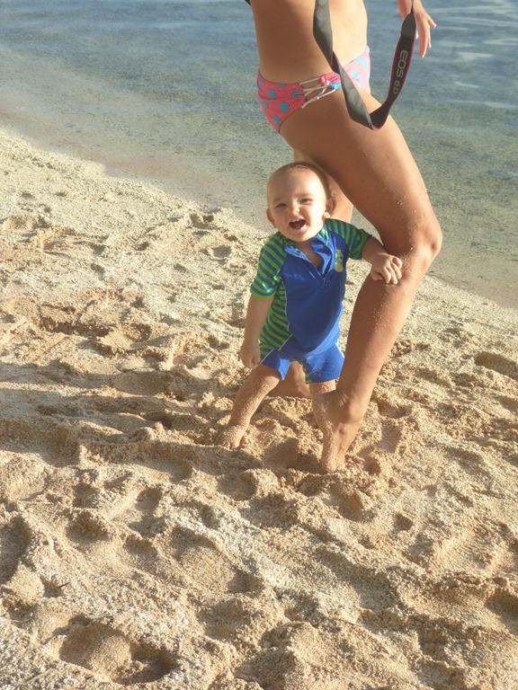 Night one involved chips (frites), dreadful background music (we felt the electronic Polynesian version of Gangnam Style was the highlight!), the disco run by Yul wearing a very grand coconut frond hat and a nearly 5 a side football match which ended up as a kick about rather than a match. E and H had fun doing gymnastics, watched on by the local kids.