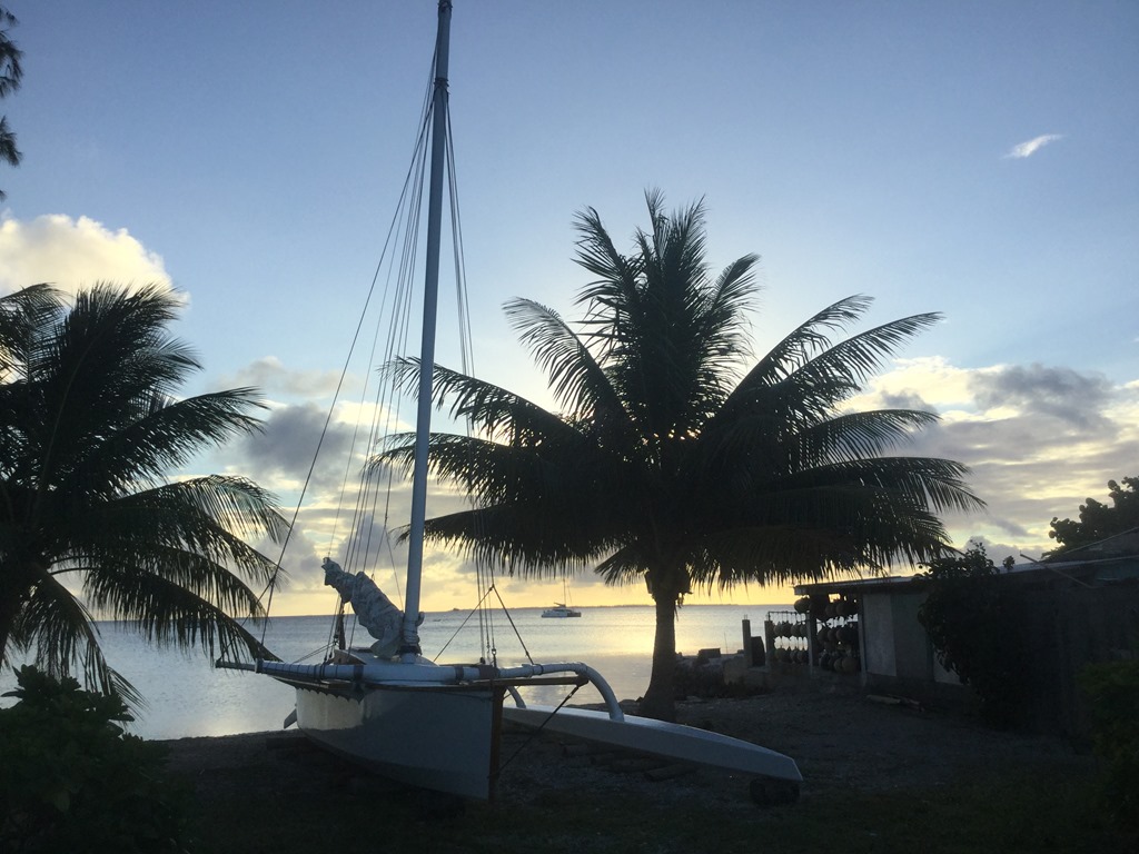 Hey ho. Our arrival at our first atoll in the Tuamotus gives us the opportunity to make our own assessment. Raroia is about halfway down the Tuamotus group and is one of the most easterly atolls in the northern group. It has a population of less than 40, mainly in one village on the W side of the atoll with six living at the pearl farm on the E side. It is about 15 miles long and 5 miles wide. One thing we immediately noticed was how cool the nights were. The 400miles S we have come have been enough to drop the night time temperatures to about 80F and we needed to break out the blanket for the first couple of nights until we were used to it again. Daytime temperatures are in the low to mid 90s but fresh due to the constant breeze – really very pleasant.