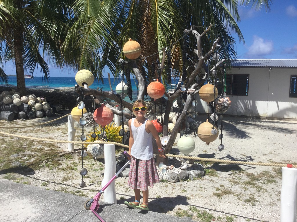 We used the time to fix a few small boat issues, catch our breathe and restart school. We visited some of the closer motus and found some floats used by the pearl farming industry, washed up on the outside of the reef. We decided that we would donate them to the pearl farm in the hope they might be nice back. It didn’t work. I now wish I had kept more than one of them. More on this later.