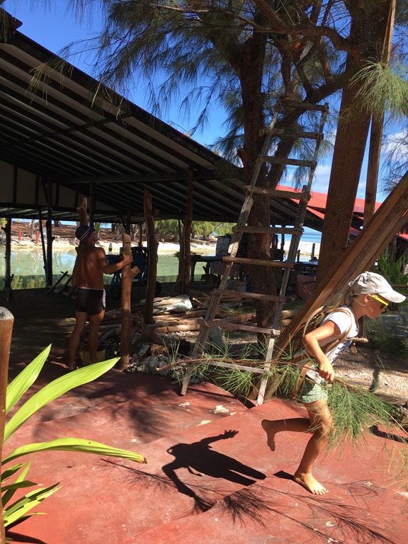 The first couple of days were windy and cloudy as the front that gave us all the wind in the last day of passage down here went through. The shoreline in front of us had hundreds of downed coconuts floating in the flat sheltered water, all blown down by the wind that went through. I don’t think it went above 35kts but it is the first strong wind the island had had for a while.