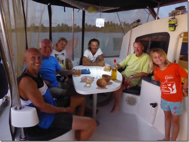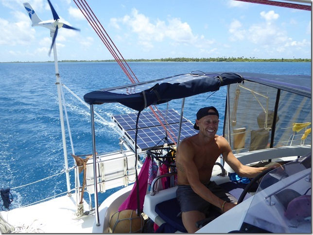 Just before we left we unexpectedly met up with our friends Irene, Georg, Mia and Noah from ZigZag, last seen in the Marquesas, which led us to stay an extra few days. After our initial catch up over coffee and mayonnaise cake (a new and very good recipe Lou has found – see that new section of the blog site), they moved up to our more sheltered anchorage. They had a major problem in that their watermaker high pressure container had cracked and they were down to their last 20l of water as the entered the atoll. We gave them some of the left over epoxy we had from fixing the rudder at Hiva Oa and it took a day to get a few layers built up. The watermaker hasn’t been on yet as Georg wants to give it a decent time to cure before he starts putting pressure in it. In the meantime, we ran our watermaker were able to give them some water in jugs to load them up. It allowed them stay and enjoy Raroia for a few days rather than just rushing through to Makemo where they should be able to fill up at the pier, one of the few places you can in the Tuamotus.