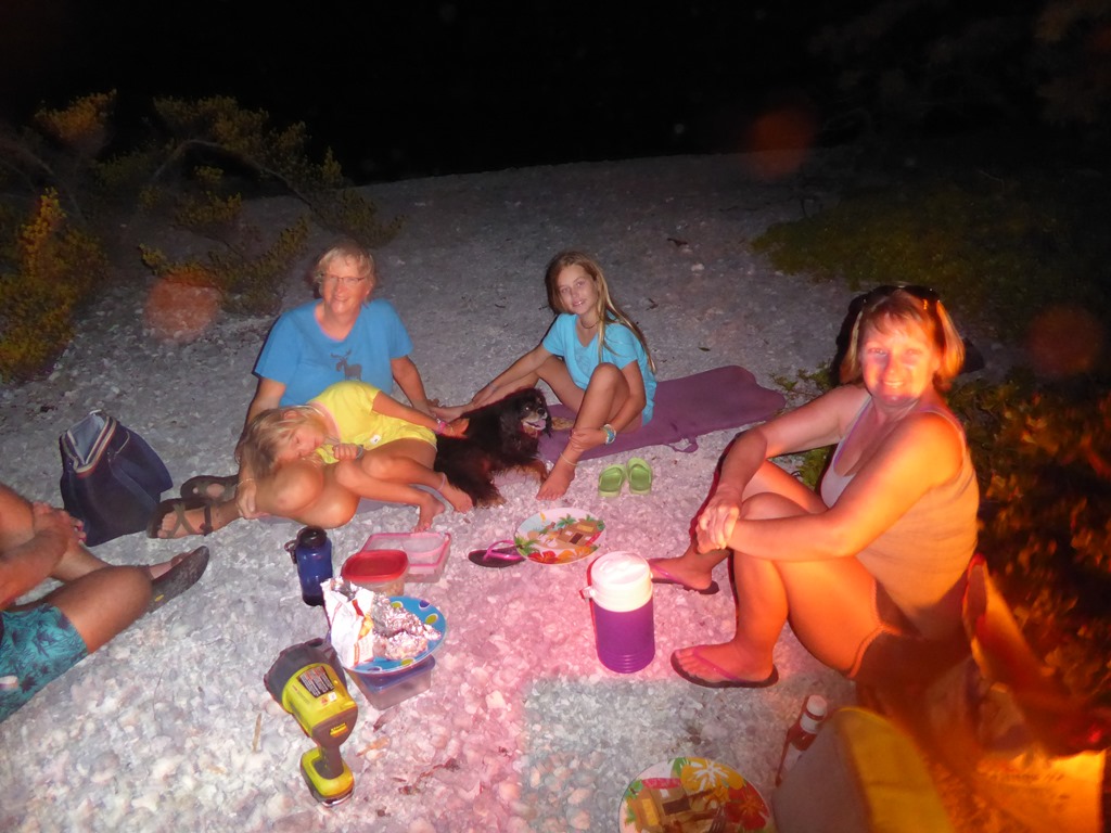 We had a last day on the beach letting the kids eat sand and have fun. Georg and I tried to catch some coconut crabs by baiting an area with split coconuts but all we attracted were hundreds of hermit crabs. We also went for a night stroll equipped with big torches to wade at the edge of the reef to see if we could find any lobster. Another abject failure but we did see a Napoleon Snake Eel which buries itself in sand and only comes out at night which softened the blow to the egos. Our last night BBQ ended up with the traditional burgers and sausages.
